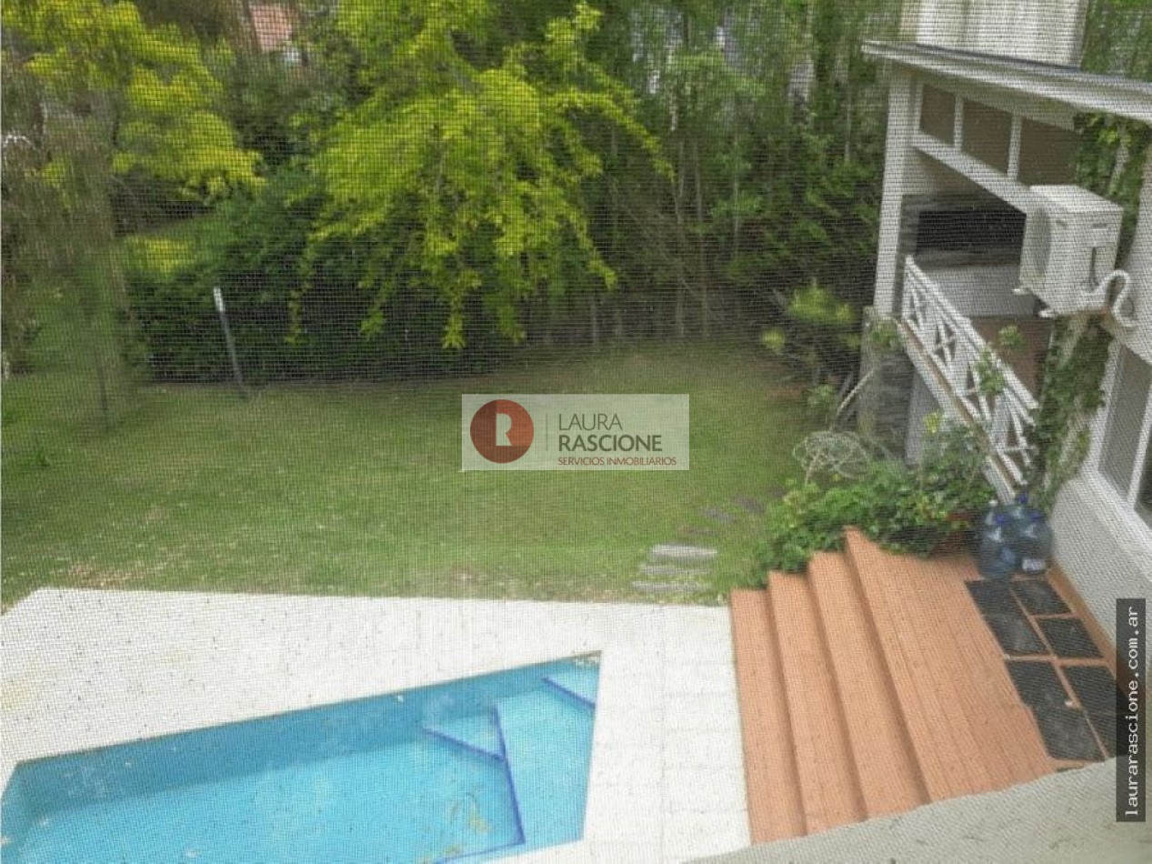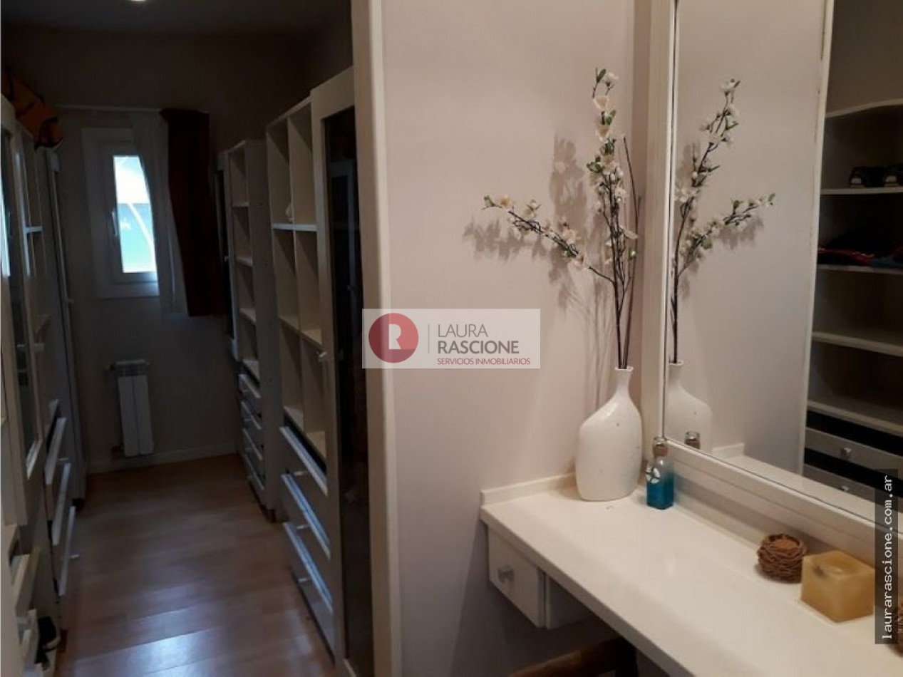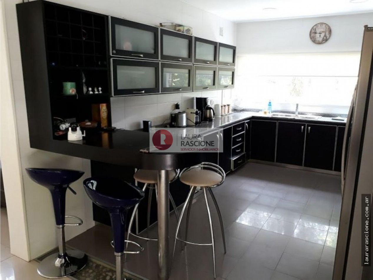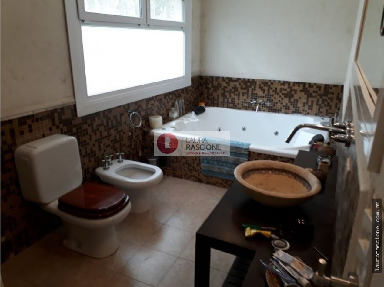 Luminosa propiedad en esquina. A nivel de calle, espacio semicubierto para 2 vehículos y espacio cubierto para guarda cuatriciclos con baño completo.Pileta climatizada. En planta, living, cocina integrada con comedor con salida a semicubierto/quincho con parrilla. lavadero, toilette y habitacion principal en suite con gran hidromasaje y vestidor. En planta alta: escritorio que balconea al living con espacio para ver TV. 3 dormitorios, (uno de ellos con cama matrimonial) y 1 baño completo con hidromasaje.
