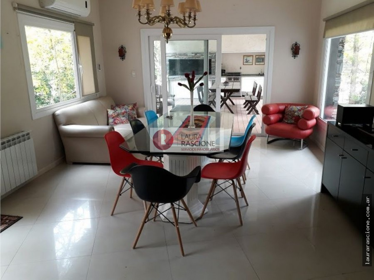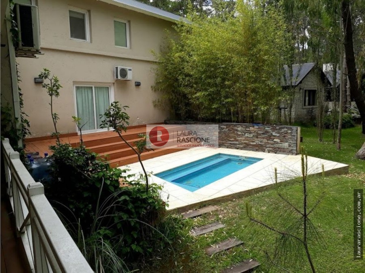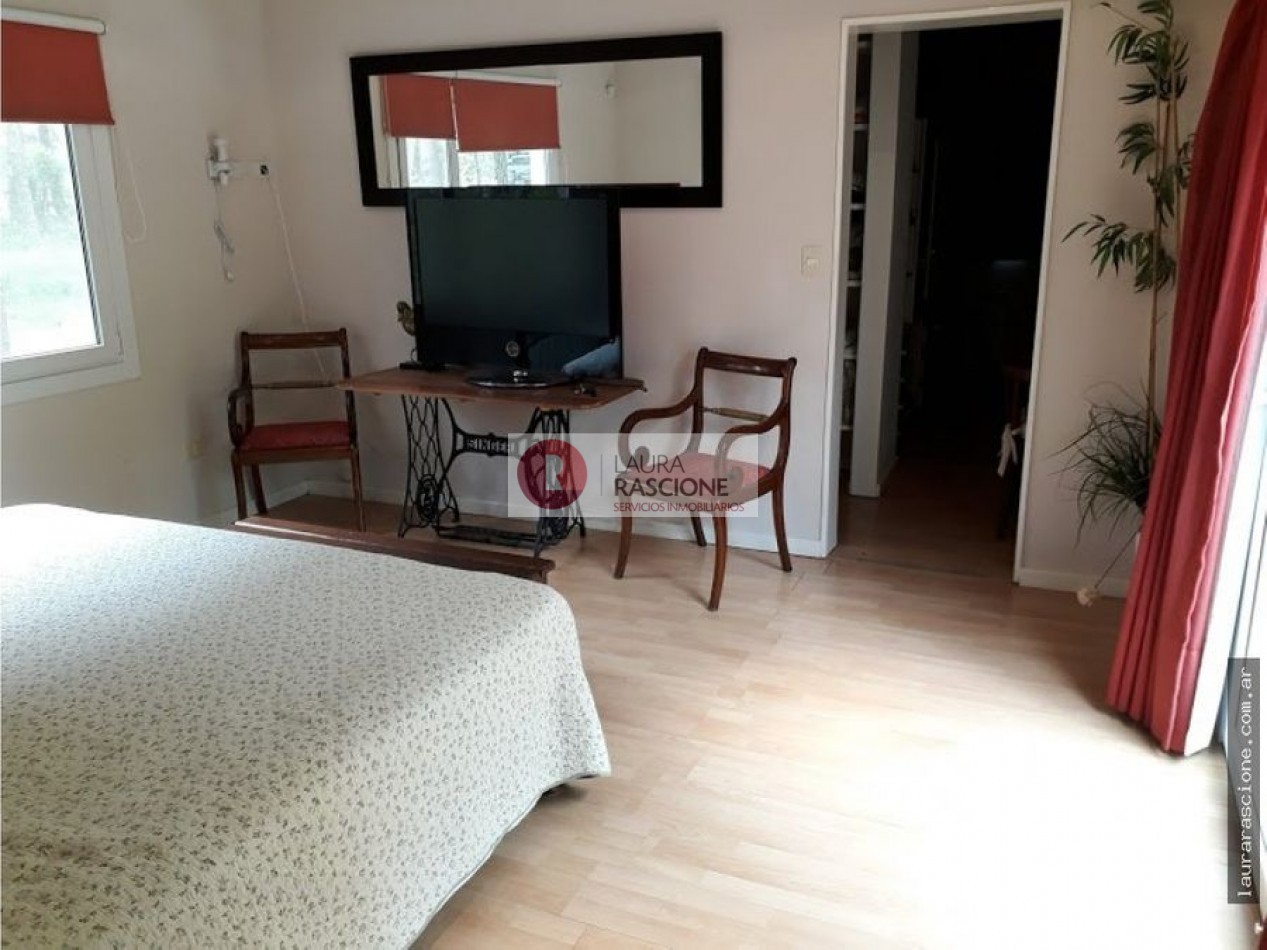 Luminosa propiedad en esquina. A nivel de calle, espacio semicubierto para 2 vehículos y espacio cubierto para guarda cuatriciclos con baño completo.Pileta climatizada. En planta, living, cocina integrada con comedor con salida a semicubierto/quincho con parrilla. lavadero, toilette y habitacion principal en suite con gran hidromasaje y vestidor. En planta alta: escritorio que balconea al living con espacio para ver TV. 3 dormitorios, (uno de ellos con cama matrimonial) y 1 baño completo con hidromasaje.