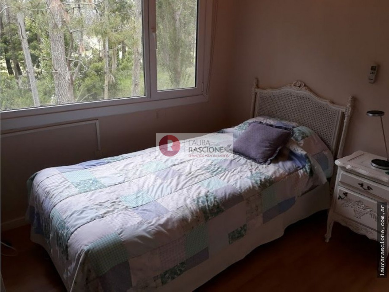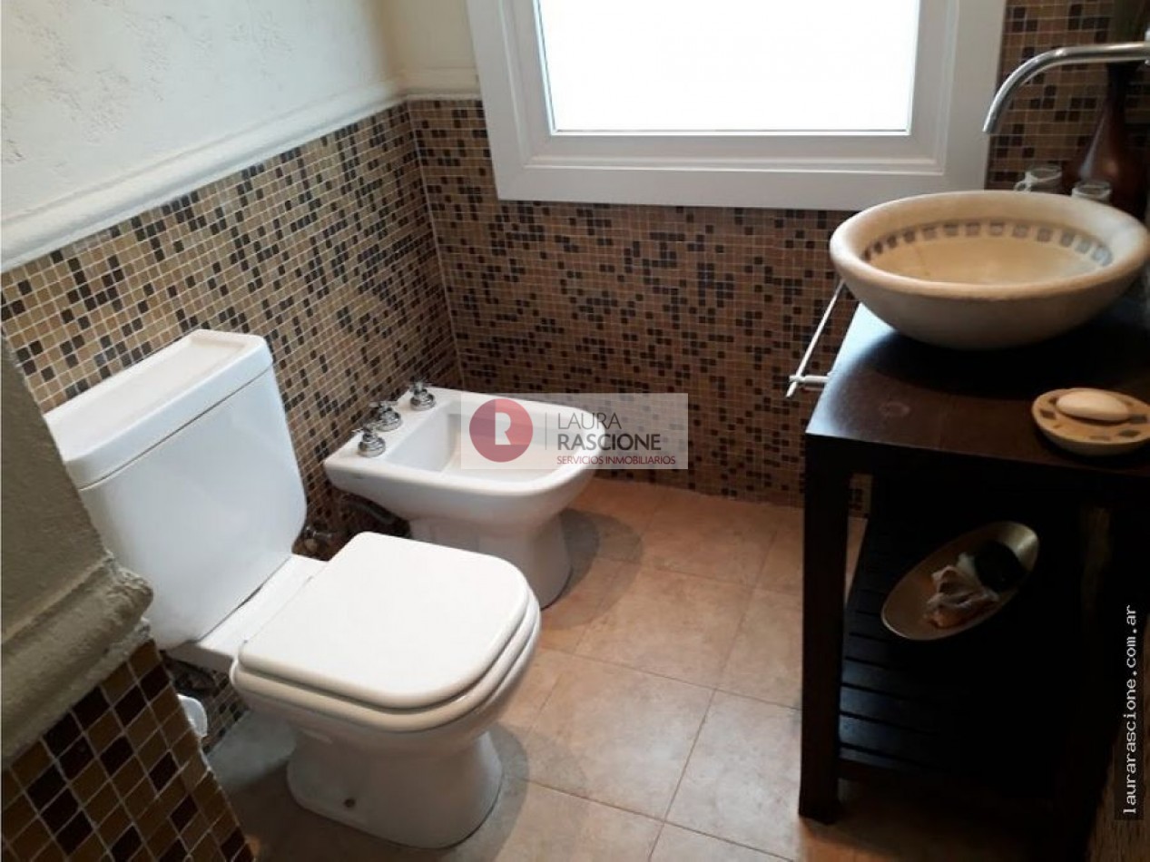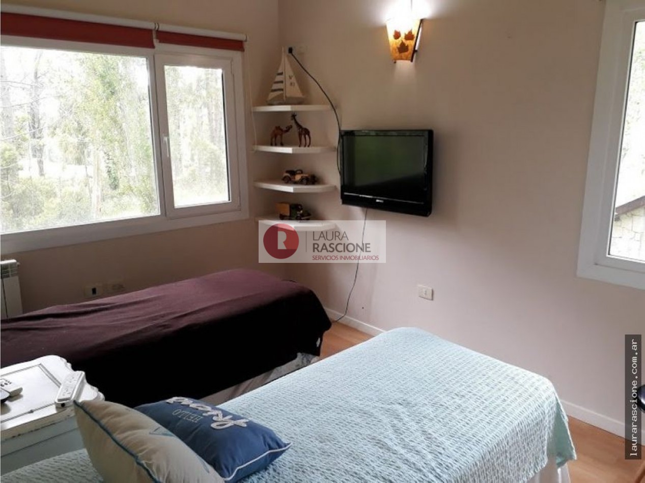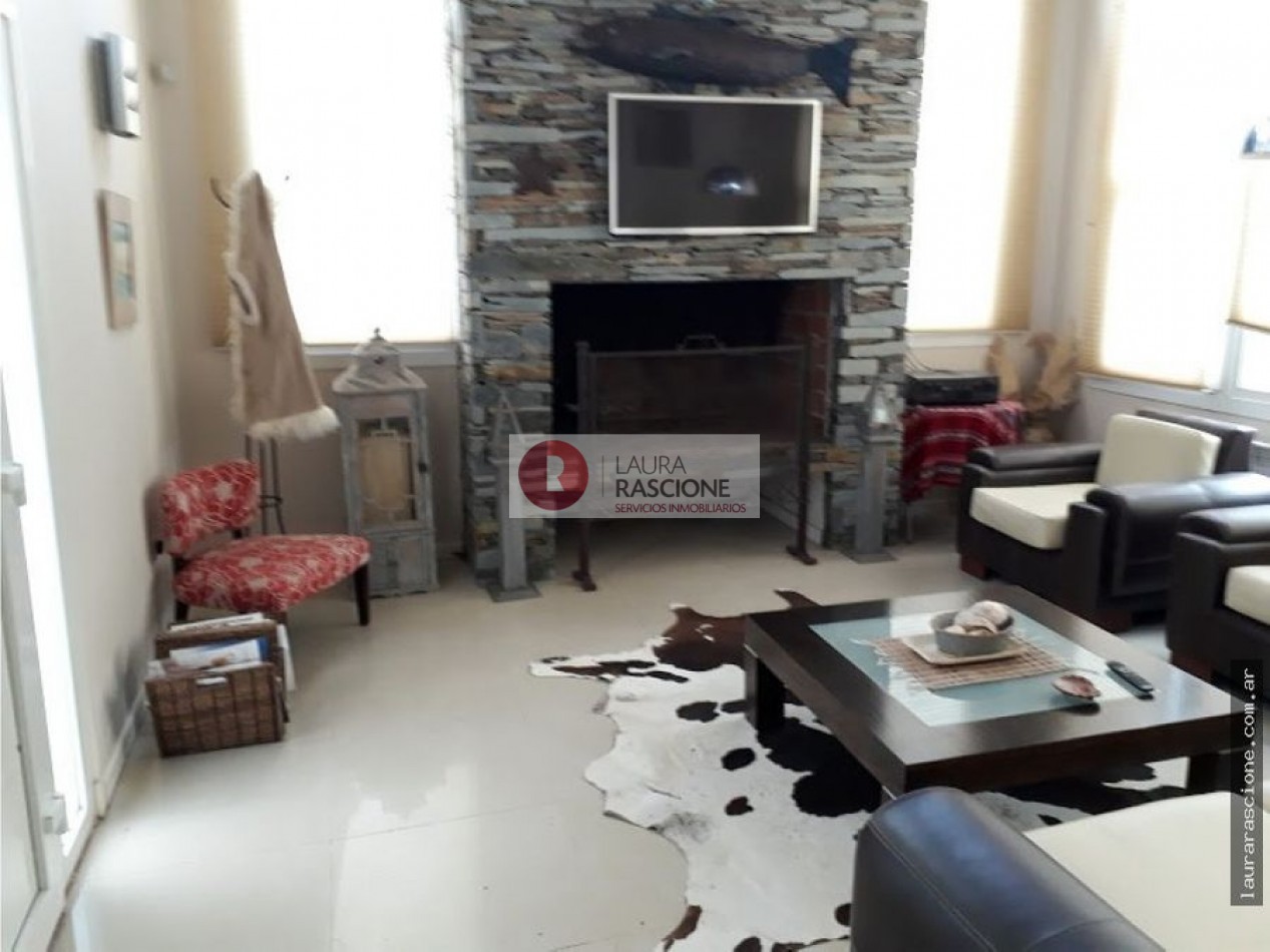 Luminosa propiedad en esquina. A nivel de calle, espacio semicubierto para 2 vehículos y espacio cubierto para guarda cuatriciclos con baño completo.Pileta climatizada. En planta, living, cocina integrada con comedor con salida a semicubierto/quincho con parrilla. lavadero, toilette y habitacion principal en suite con gran hidromasaje y vestidor. En planta alta: escritorio que balconea al living con espacio para ver TV. 3 dormitorios, (uno de ellos con cama matrimonial) y 1 baño completo con hidromasaje.