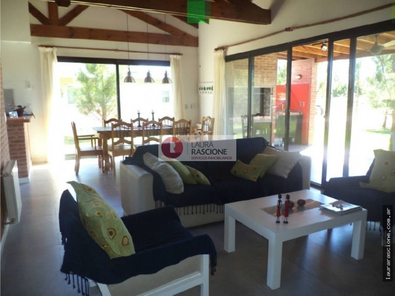 Casa en La Herradura Hermosa Casa Estilo Campo construida en una sola planta Cuenta con un gran Living con hogar a leña ,grandes ventanales que se comunican con la galeria - Comedor cocina integrada con barra desayunadora Toilette de recepcion 1 Cuarto Matrimonial en suite con puerta corrediza que se comunica a la galeria 3 Cuartos secundarios Altillo 1 Baño completo Calefaccion por losa radiante Exterior Gran galeria con parrilla Riego por aspercion Parque totalmente cercado