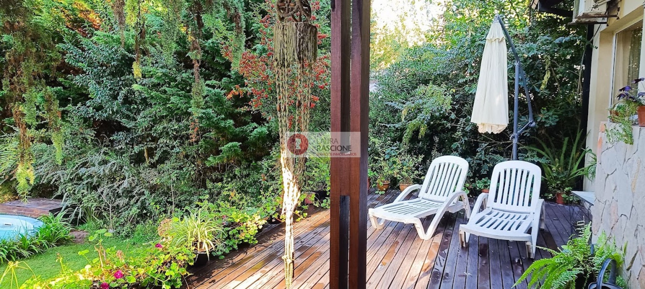 GALERIA SEMITECHADA EN SECTOR PARRILLA. AMPLIO SOLARIUM CON DECK DE MADERA