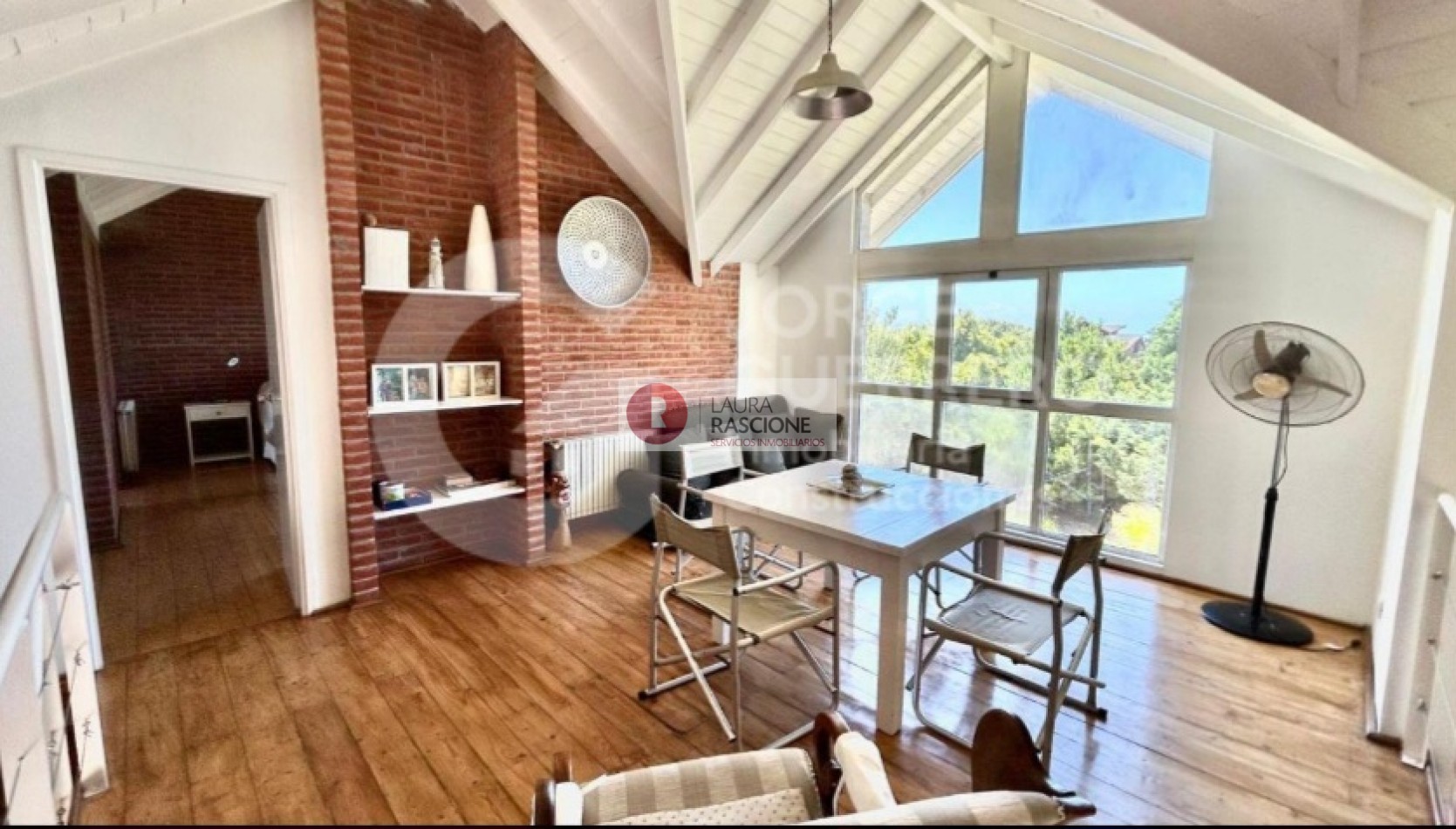 Al ingresar nos encontramos con un amplio living con ventanales con vistas divinas al frente de la propiedad y al parque trasero de 1100m2, también se destacan sus techos de doble altura, su hermoso hogar a leña, sus amplios sillones con mesa ratona de gran tamaño y calidad deco.