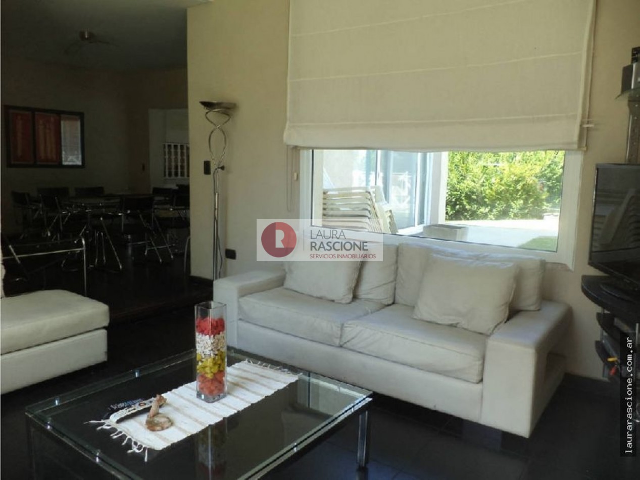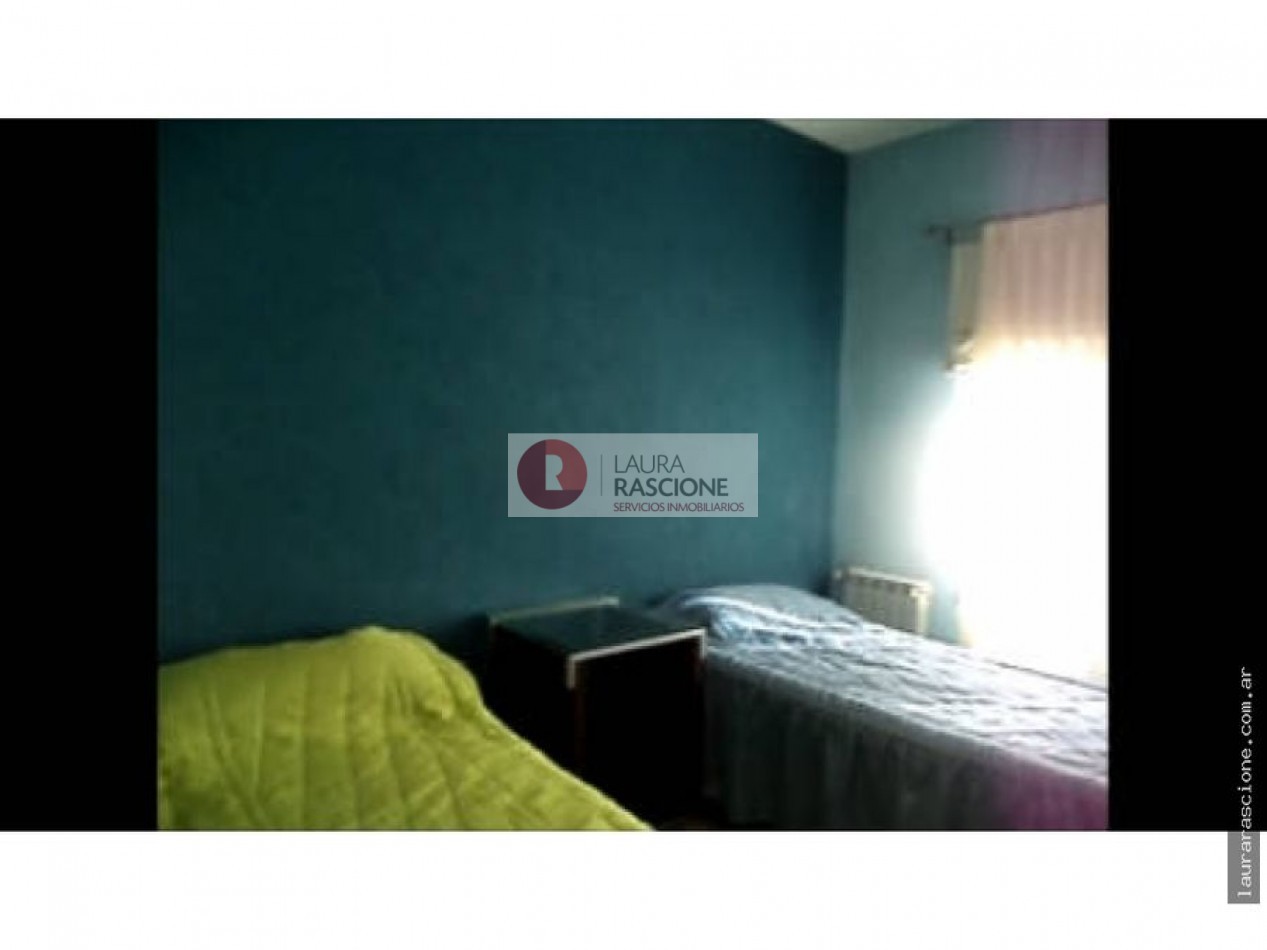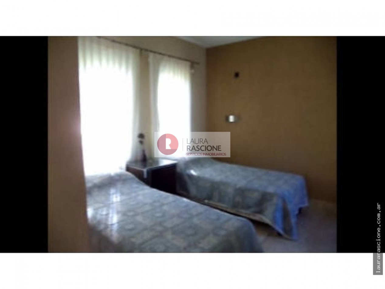 Dormitorio secundario con 2 camas en suite planta alta: 2 Dormitorios secundarios con 2 camas, 1 baño completo con bañera, 1 dormitorio en suite con vestidor, led de 40'' y aire acondicionado. El El exterior posee parrilla, juego de mesa y sillas (techado). Cochera semi cubierta, wifi, teléfono. Piscina climatizada.