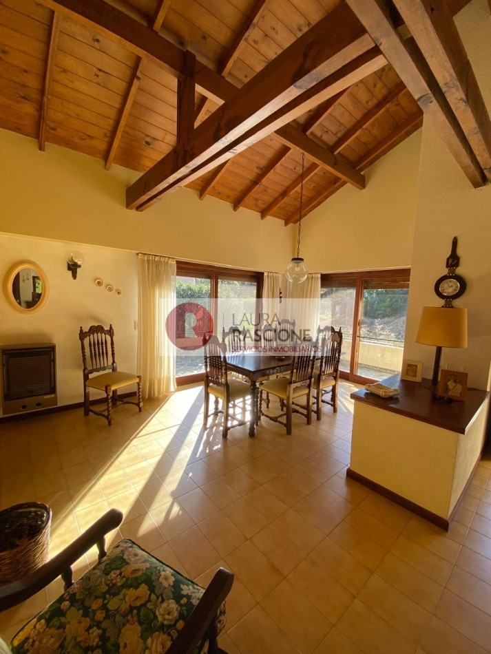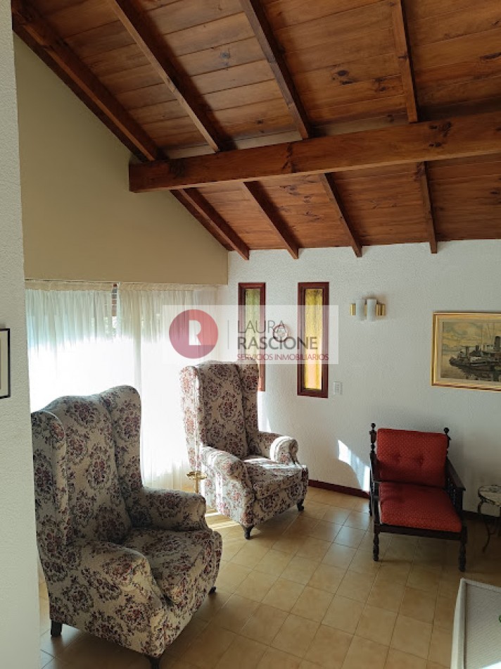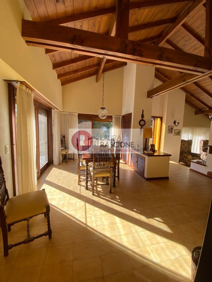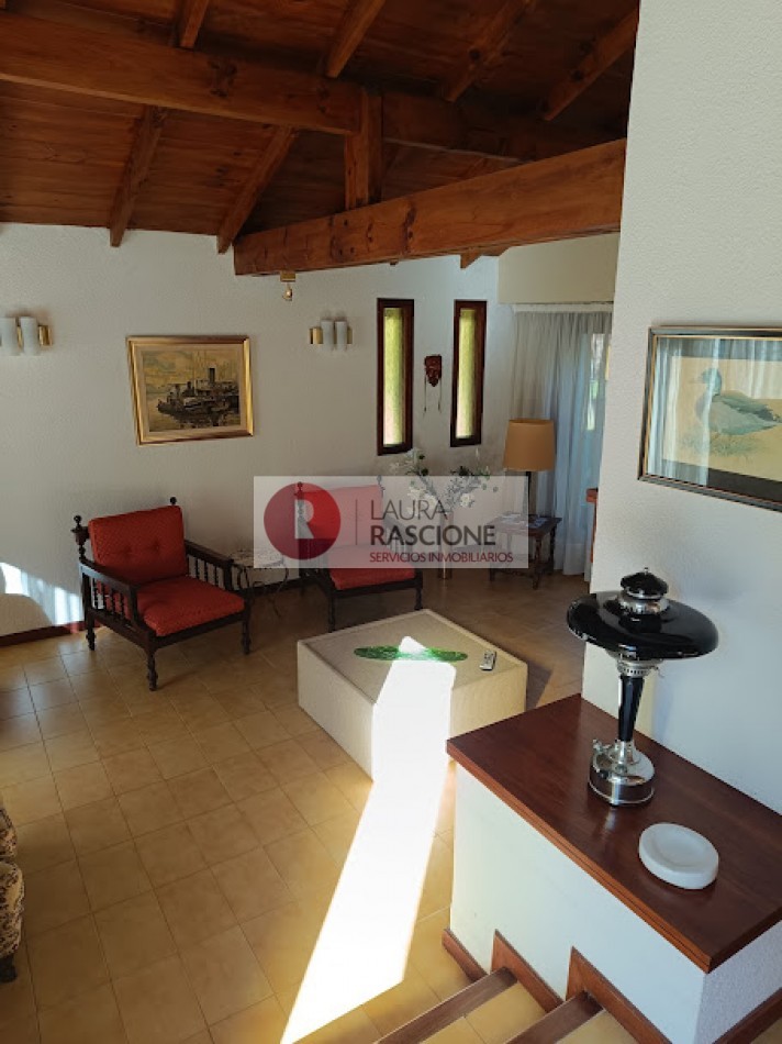 PROPIEDAD UBICADA EN ZONA B5. EN SU PLANTA BAJA SE ENCUENTRA EL COMEDOR, LA COCINA ( CON DOBLE CIRCULACION) Y EL LIVING EN DESNIVEL CON HOGAR DE DOBLE BOCA.