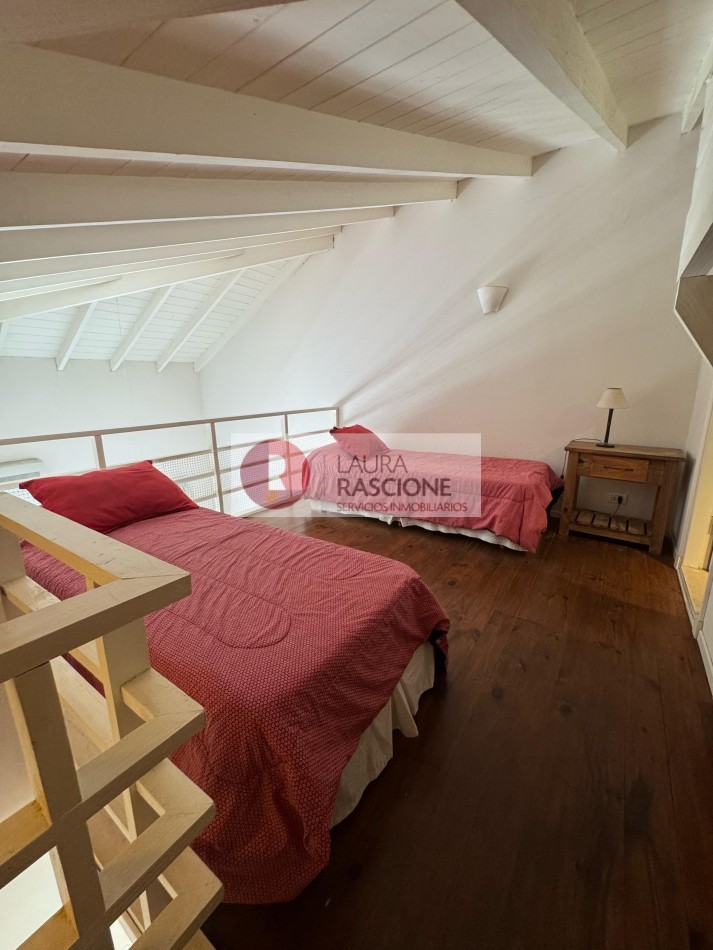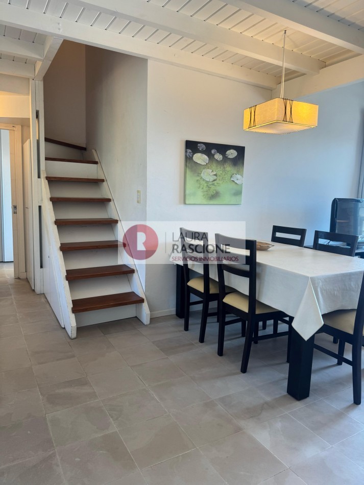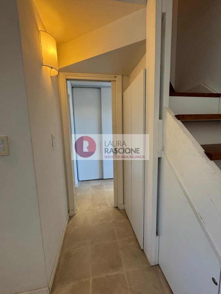 Esta unidad esta dispuesta en 2 plantas, al ingreso se encuentra el living comedor integrado, cocina completa con anafe, sector de placard y área de guardado (ubicado debajo de escalera) en planta baja se ubica el dormitorio matrimonial con baño completo en suite. cuenta con entrepiso muy amplio adecuado como habitación el cual balconea con el área de living, dentro de esta misma área de entrepiso se accede al 2º baño completo con ducha, El área de balcón es muy amplia y se encuentra totalmente cubierta, cuenta con parrilla, juego de mesa y sillas, la unidad tiene cochera cubierta de 12.8m2. Calefacción: AAC (frió/calor)