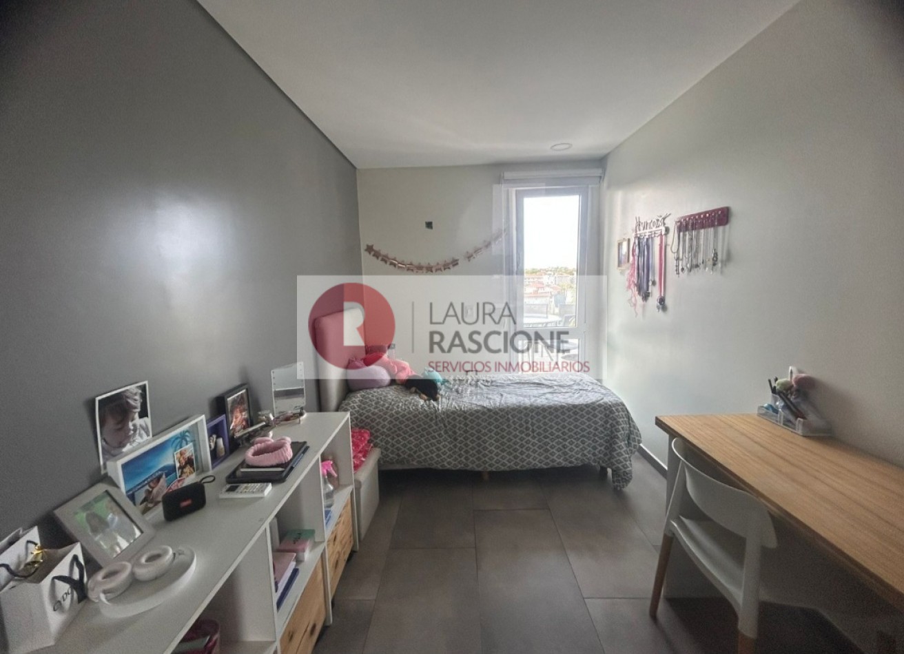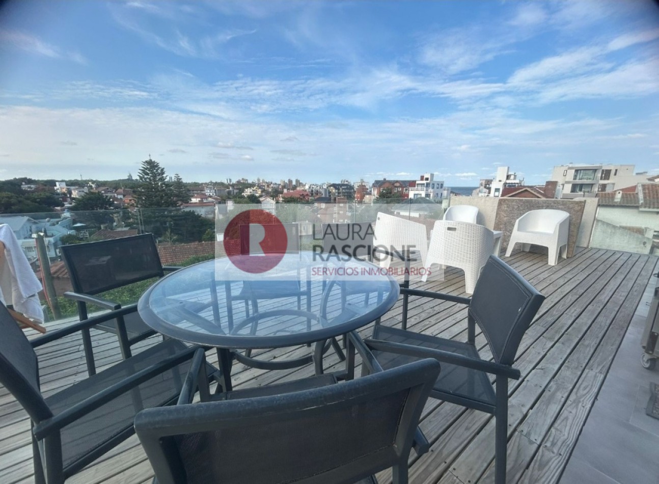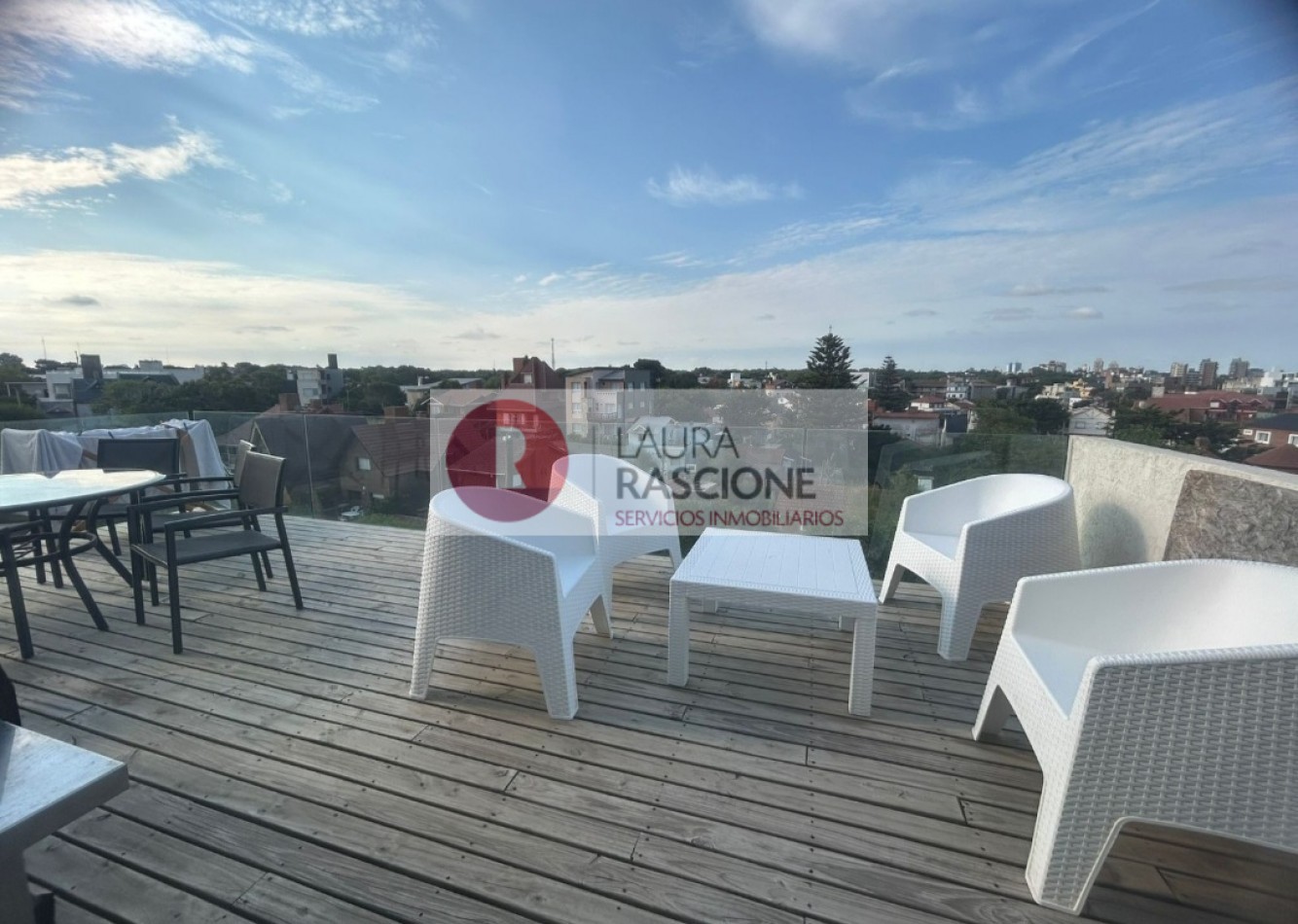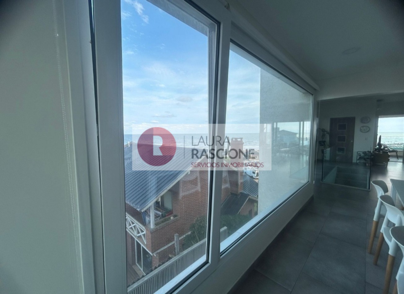 El piso cuenta con 3 dormitorios donde 1 de ellos en suite, tiene espacio de usos múltiples o escritorio ,en el sector del living tiene un gran balcón con vistas al Mar y en el sector de la cocina un balcón terraza de mas de 30M2 con parrilla a gas y espectaculares vistas panorámicas.