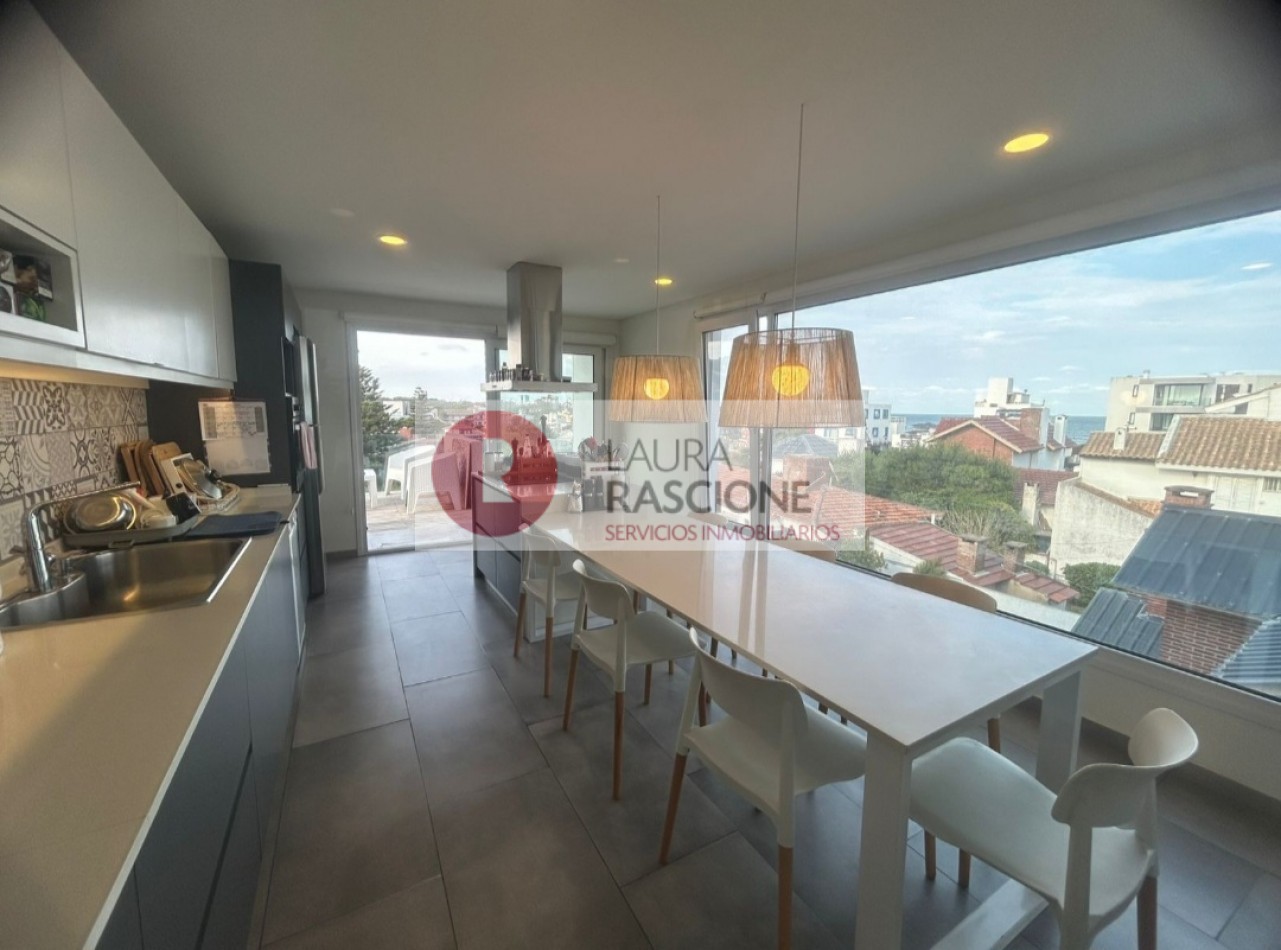 Al ingresar a este hermoso departamento nos encontramos con un muy amplio living comedor con cocina integrada, con importante isla y mobiliario de 1er nivel, desde todos los ambientes tenemos vista parcial franca al Mar.