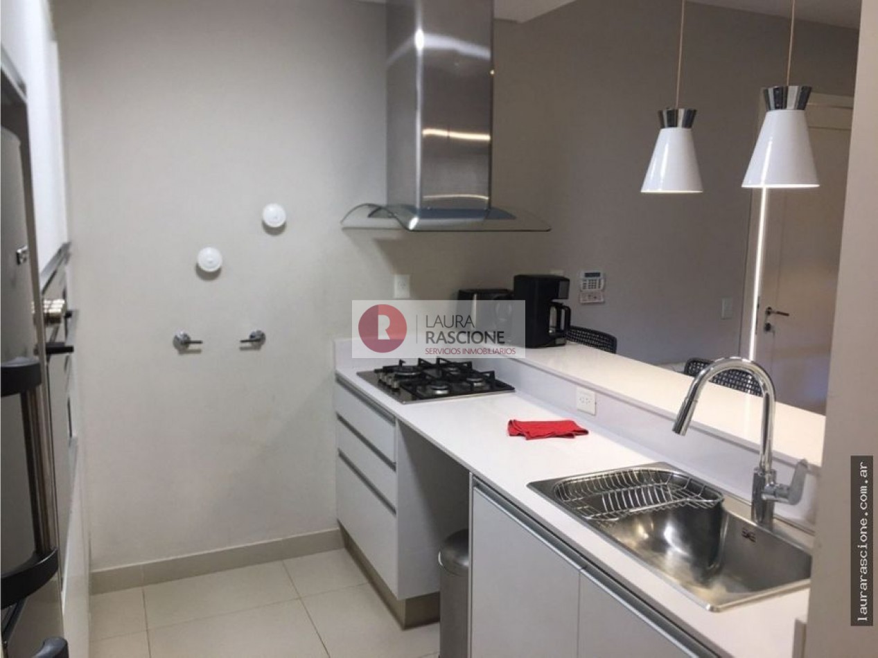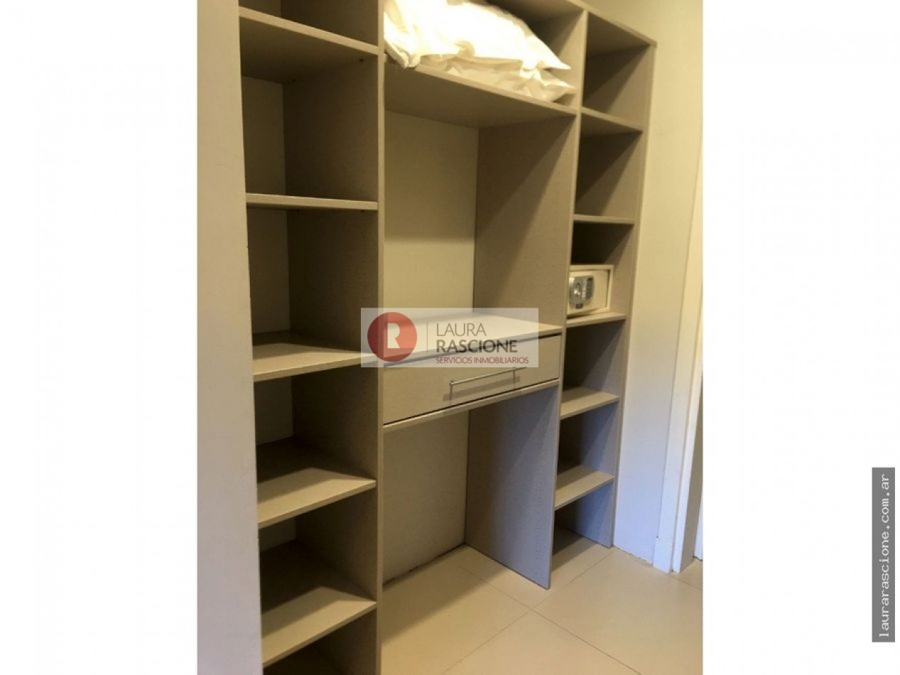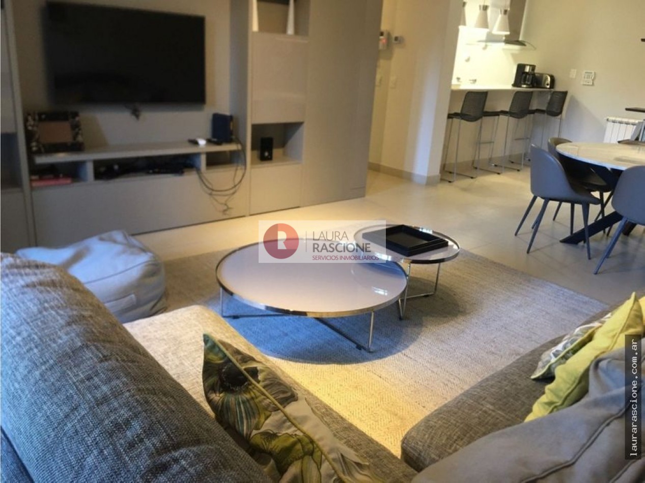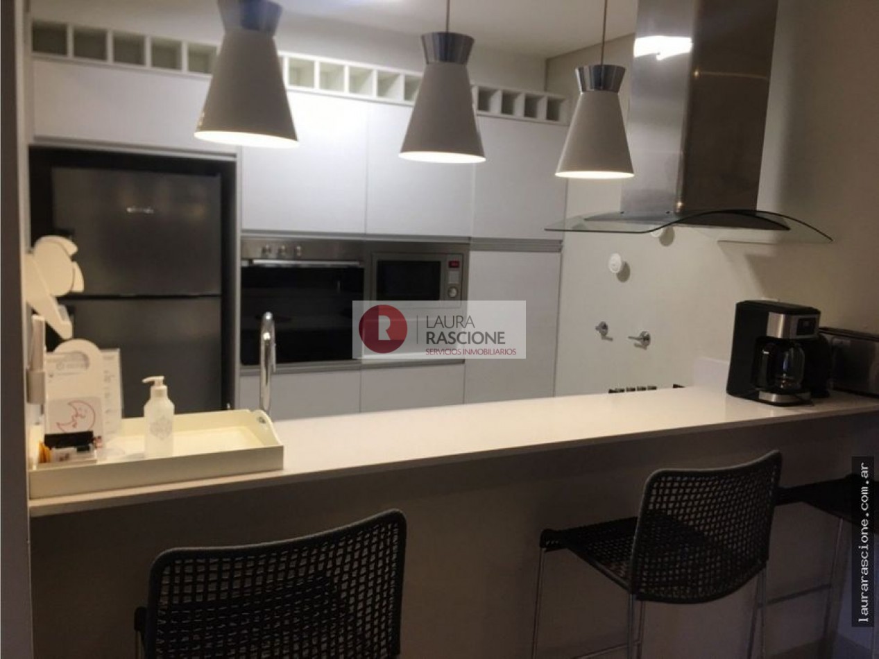 Espectacular Departamento de categoría en venta. El mismo cuenta con un amplio y luminoso living comedor con salida al balcón corrido con parrilla. Cocina integrada al comedor. Habitación principal en suite con vestidor. Las dos habitaciones con salida al balcón. Segundo baño completo. Cochera Cubierta. Baulera. Jardín privado - Superficie: 100 m2 Cubiertos 21 m2 Balcón 147 m2 Jardín privado Amenities: Piscina climatizada cubierta. Piscina exterior. Gimnasio, sauna, sala de masajes, mini sala de cine, terraza con parrillas equipada con mesas grandes, hidromasaje para varias personas, solárium con Jacuzzi, baños comunes, jardín de invierno. (Equipado con accesorios de primer nivel). Vigilancia 24 hs. Detalles constructivos: Carpintería exterior de PVC con cámara de aire. Carpintería interior de madera a medida. Calefacción por radiadores. Aires acondicionados frio-calor. Interior de placares totalmente terminados. Mobiliario de cocina a medida. Mesadas de cocina silestone, mesada de baño de mármol. Información adicional: Gas natural, agua caliente con caldera individual. *Toda la información y medidas provistas por el Agente Inmobiliario son aproximadas y podrán ratificarse con la documentación pertinente.
