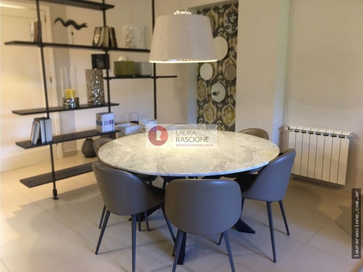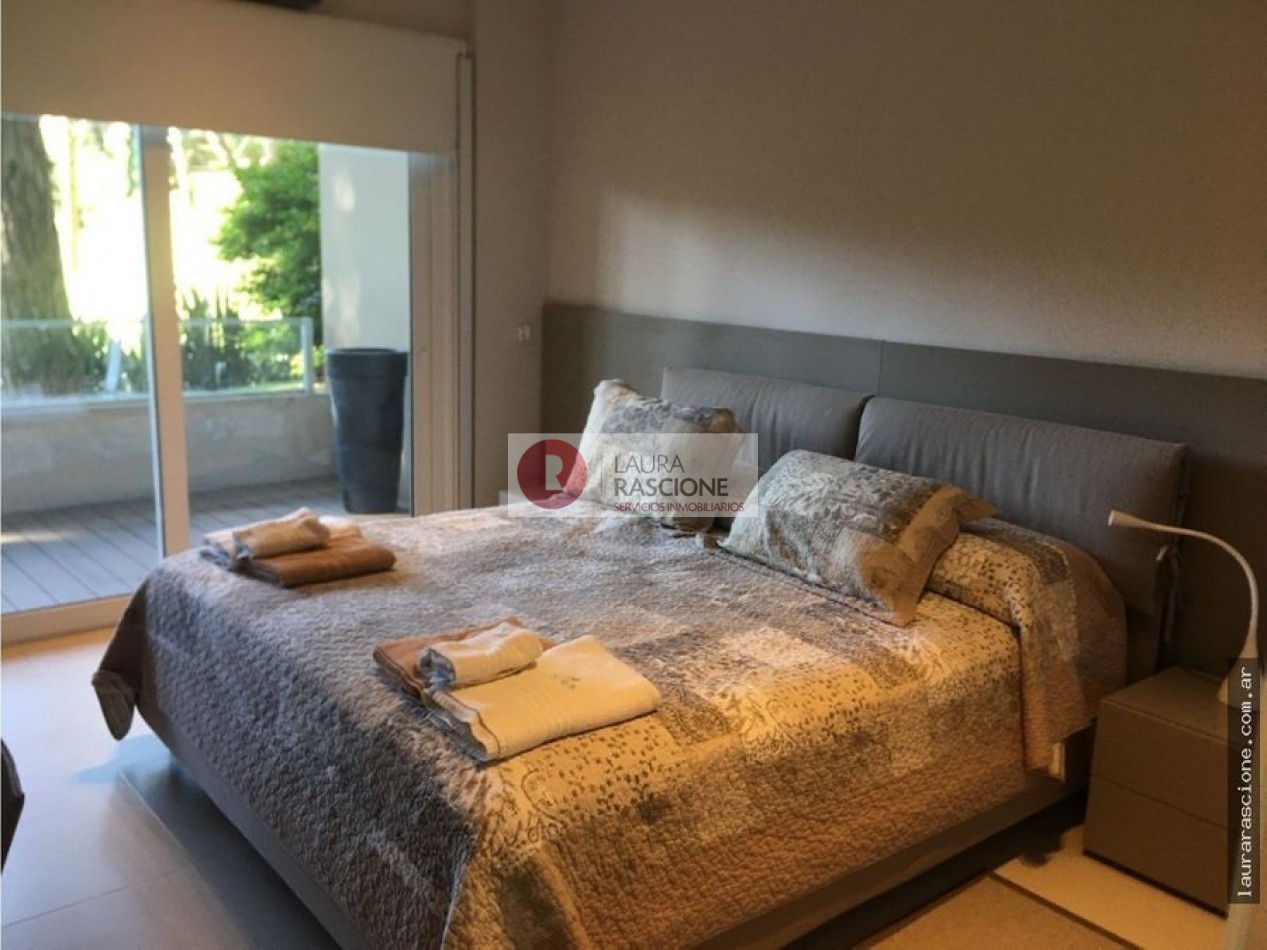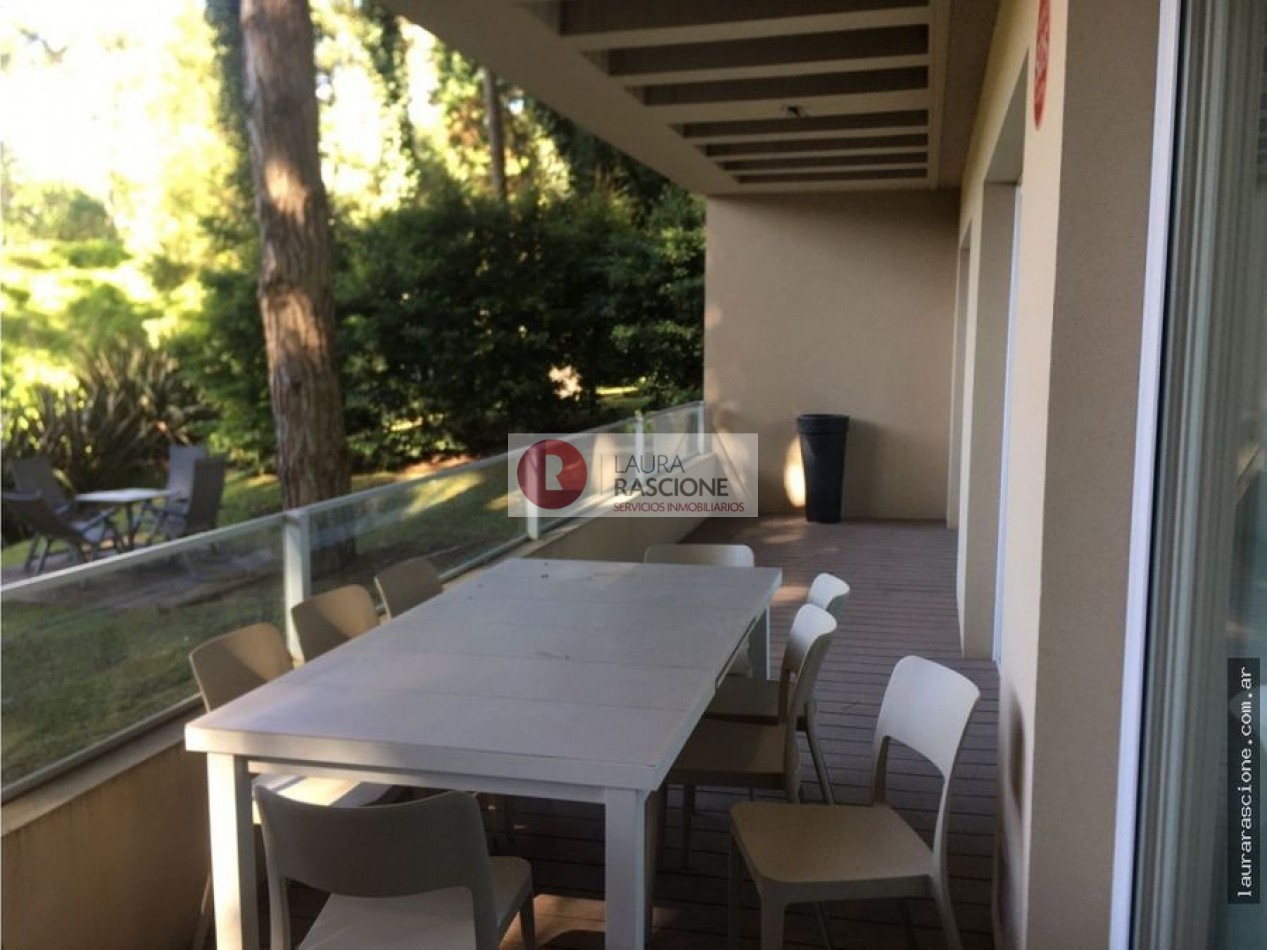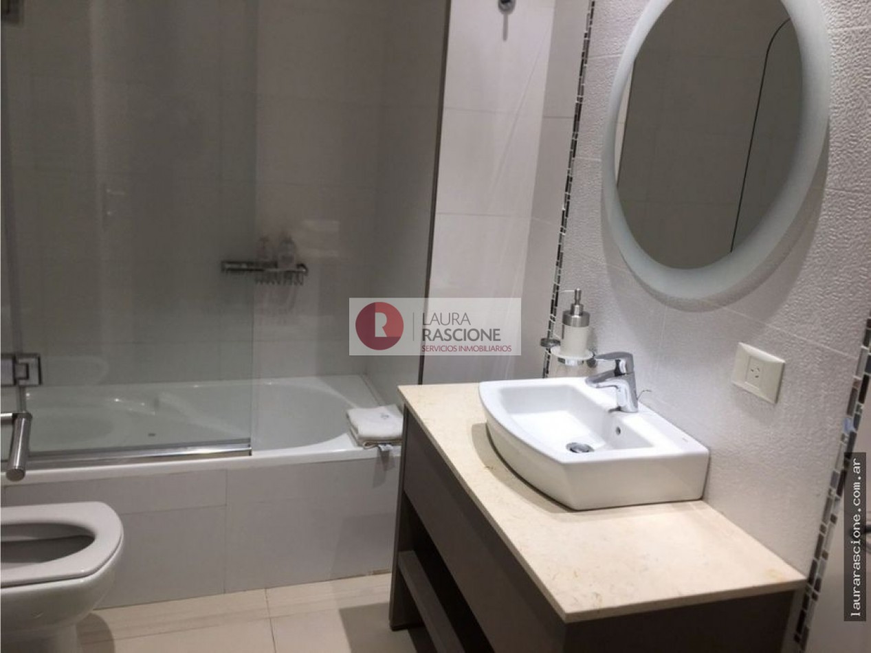 Espectacular Departamento de categoría en venta. El mismo cuenta con un amplio y luminoso living comedor con salida al balcón corrido con parrilla. Cocina integrada al comedor. Habitación principal en suite con vestidor. Las dos habitaciones con salida al balcón. Segundo baño completo. Cochera Cubierta. Baulera. Jardín privado - Superficie: 100 m2 Cubiertos 21 m2 Balcón 147 m2 Jardín privado Amenities: Piscina climatizada cubierta. Piscina exterior. Gimnasio, sauna, sala de masajes, mini sala de cine, terraza con parrillas equipada con mesas grandes, hidromasaje para varias personas, solárium con Jacuzzi, baños comunes, jardín de invierno. (Equipado con accesorios de primer nivel). Vigilancia 24 hs. Detalles constructivos: Carpintería exterior de PVC con cámara de aire. Carpintería interior de madera a medida. Calefacción por radiadores. Aires acondicionados frio-calor. Interior de placares totalmente terminados. Mobiliario de cocina a medida. Mesadas de cocina silestone, mesada de baño de mármol. Información adicional: Gas natural, agua caliente con caldera individual. *Toda la información y medidas provistas por el Agente Inmobiliario son aproximadas y podrán ratificarse con la documentación pertinente.