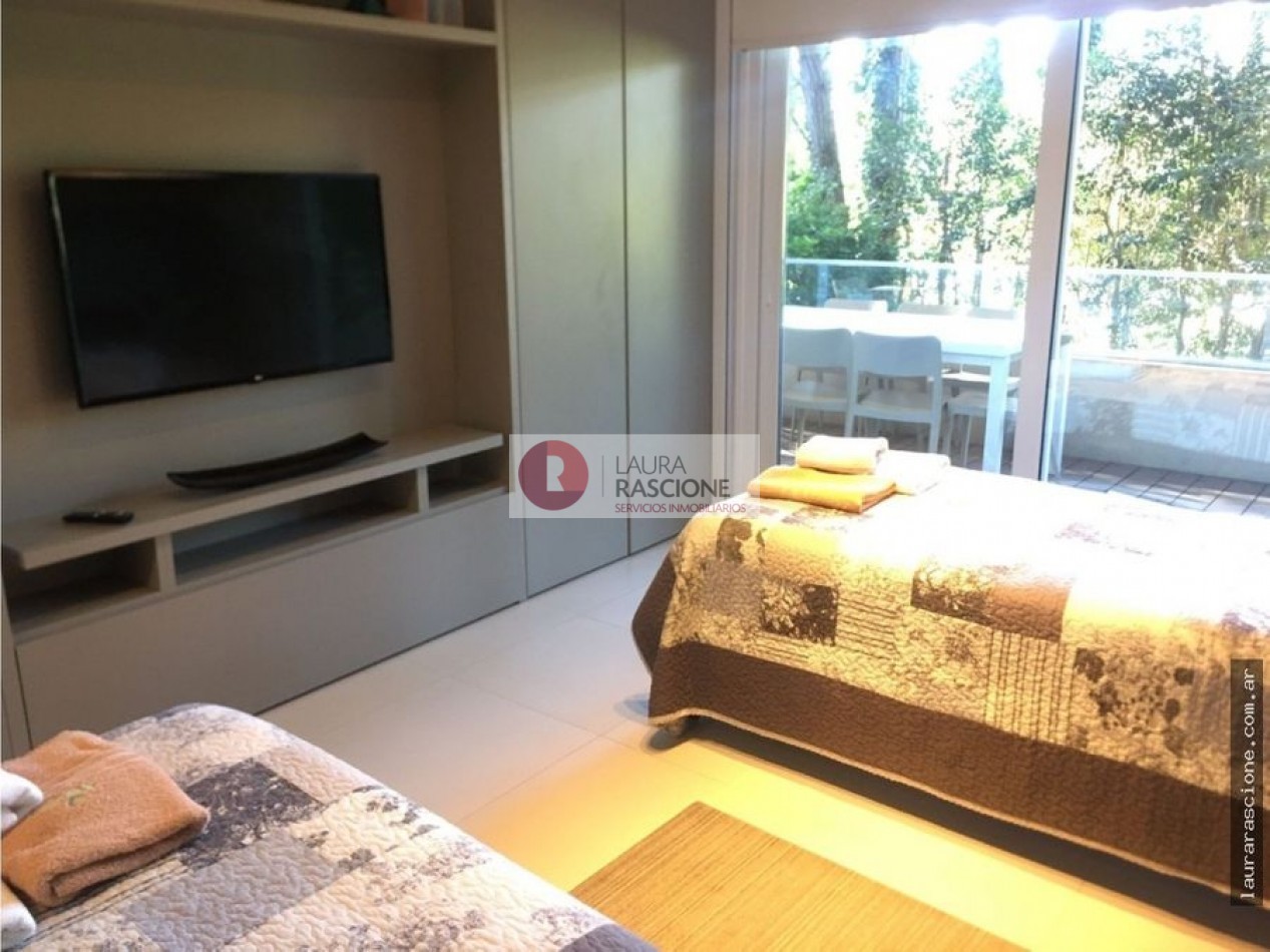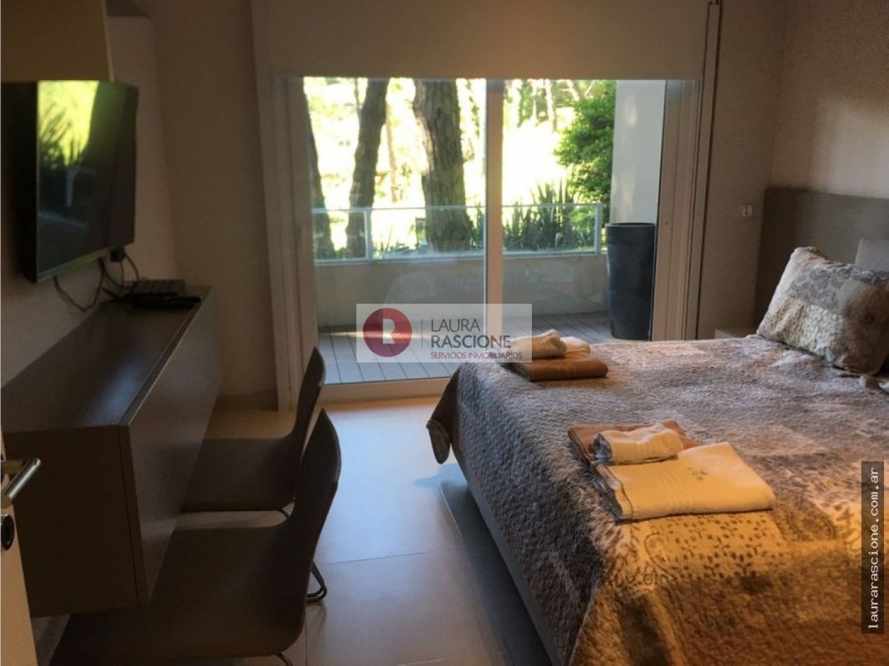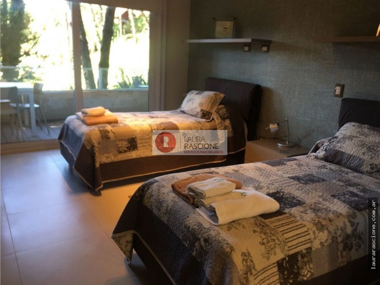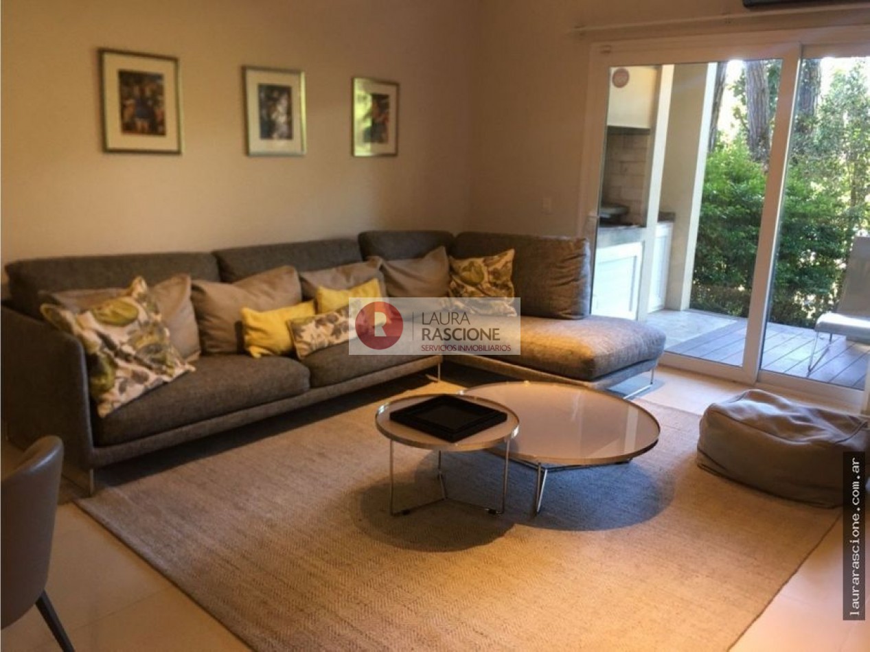 Espectacular Departamento de categoría en venta. El mismo cuenta con un amplio y luminoso living comedor con salida al balcón corrido con parrilla. Cocina integrada al comedor. Habitación principal en suite con vestidor. Las dos habitaciones con salida al balcón. Segundo baño completo. Cochera Cubierta. Baulera. Jardín privado - Superficie: 100 m2 Cubiertos 21 m2 Balcón 147 m2 Jardín privado Amenities: Piscina climatizada cubierta. Piscina exterior. Gimnasio, sauna, sala de masajes, mini sala de cine, terraza con parrillas equipada con mesas grandes, hidromasaje para varias personas, solárium con Jacuzzi, baños comunes, jardín de invierno. (Equipado con accesorios de primer nivel). Vigilancia 24 hs. Detalles constructivos: Carpintería exterior de PVC con cámara de aire. Carpintería interior de madera a medida. Calefacción por radiadores. Aires acondicionados frio-calor. Interior de placares totalmente terminados. Mobiliario de cocina a medida. Mesadas de cocina silestone, mesada de baño de mármol. Información adicional: Gas natural, agua caliente con caldera individual. *Toda la información y medidas provistas por el Agente Inmobiliario son aproximadas y podrán ratificarse con la documentación pertinente.