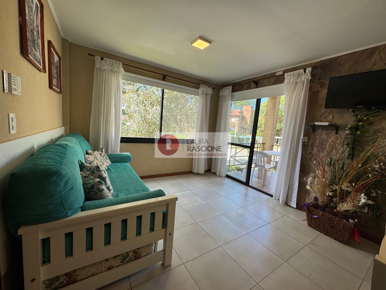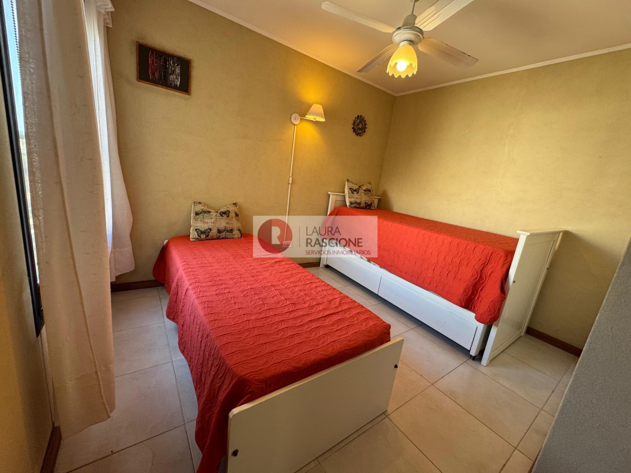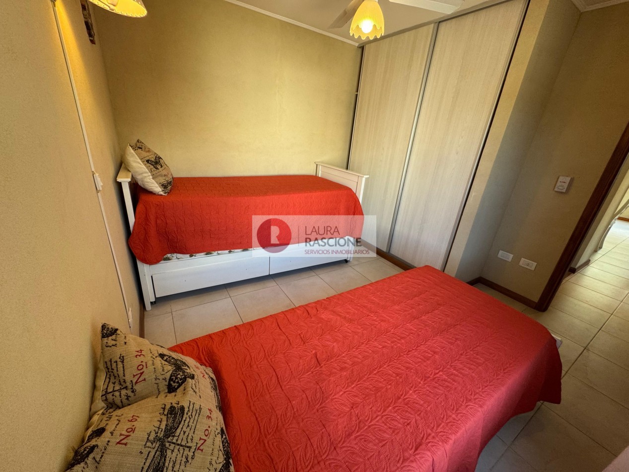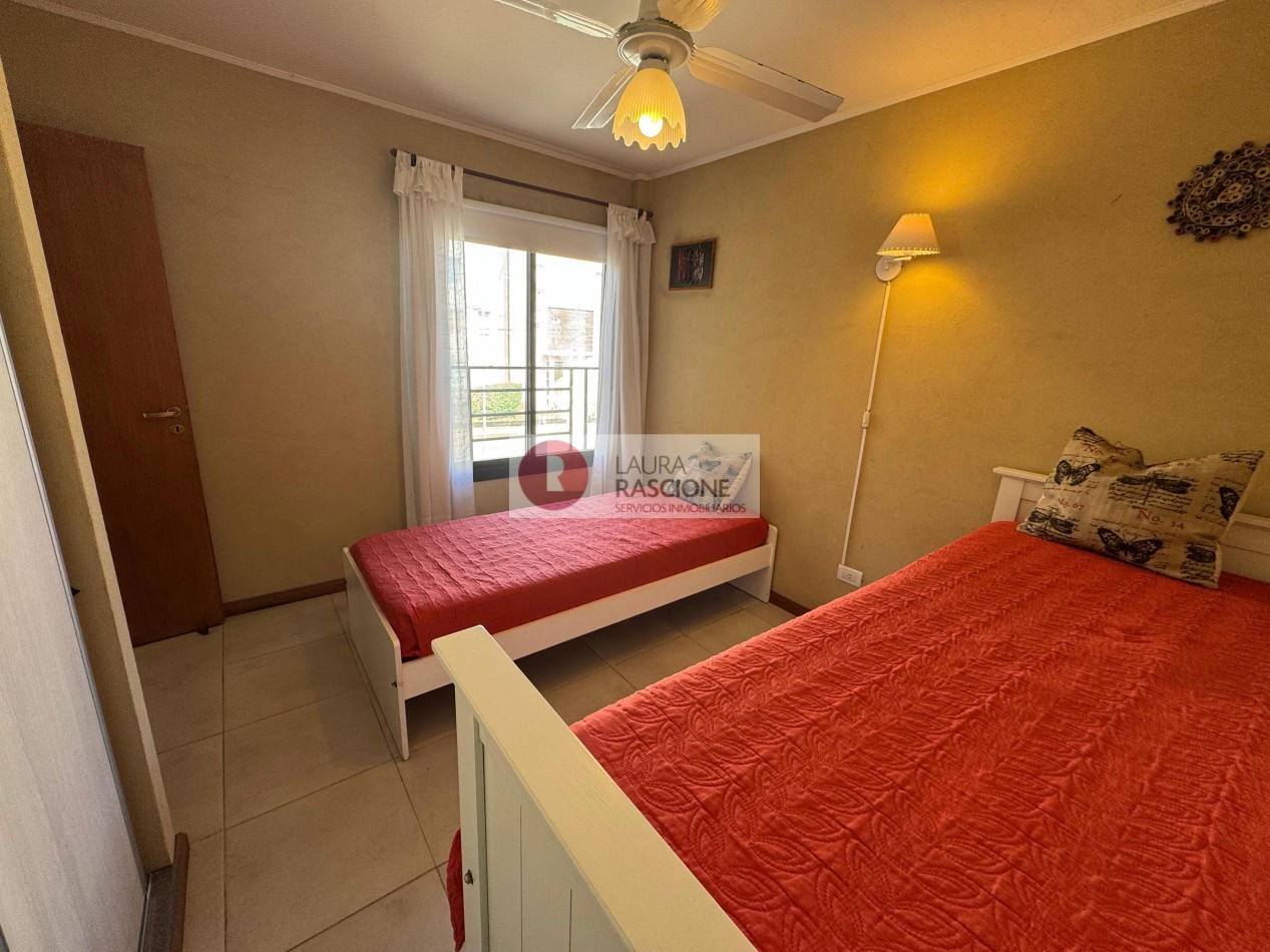 Venta de Departamento de 3 Ambientes amoblado en Valeria del mar en perfecto estado, en un primer piso al frente, el mismo se encuentra ubicado en una excelente zona a tan solo 150 metros del mar, cuenta con 2 dormitorios, un baño, cocina, living comedor, balcón con parrilla que da al parque, cochera en subsuelo con portón automatizado mas guarda cuatriciclo y terraza con doble Jacuzzi.