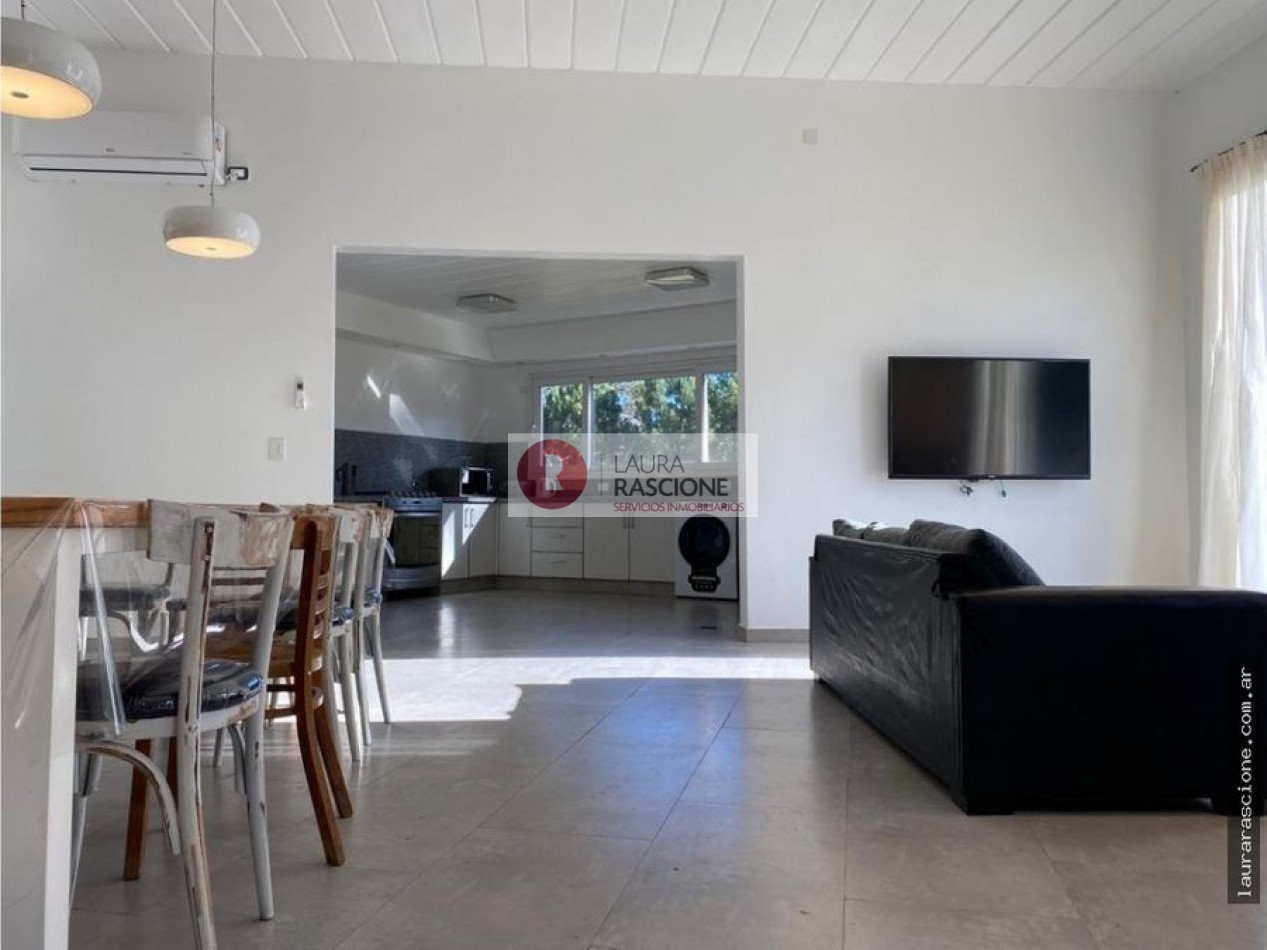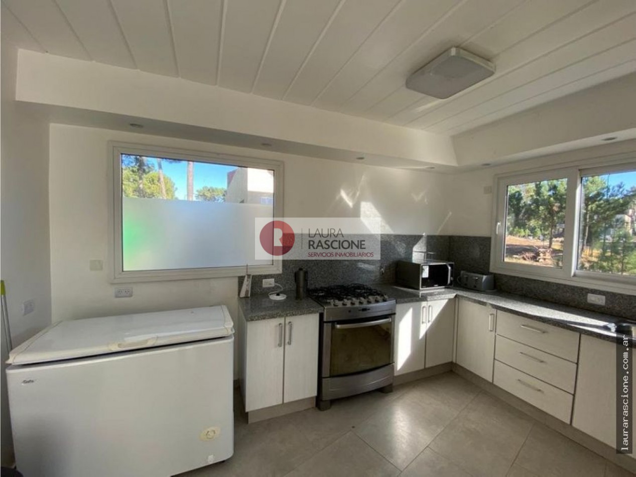 Excelente casa en Pinamar, en zona de Alamos Cuenta con amplio y luminoso living comedor cocina. Cuatro (4 ) Dormitorios con espacio para 12 personas, 3 baños y un jardín hermoso con parrilla y horno de barro.