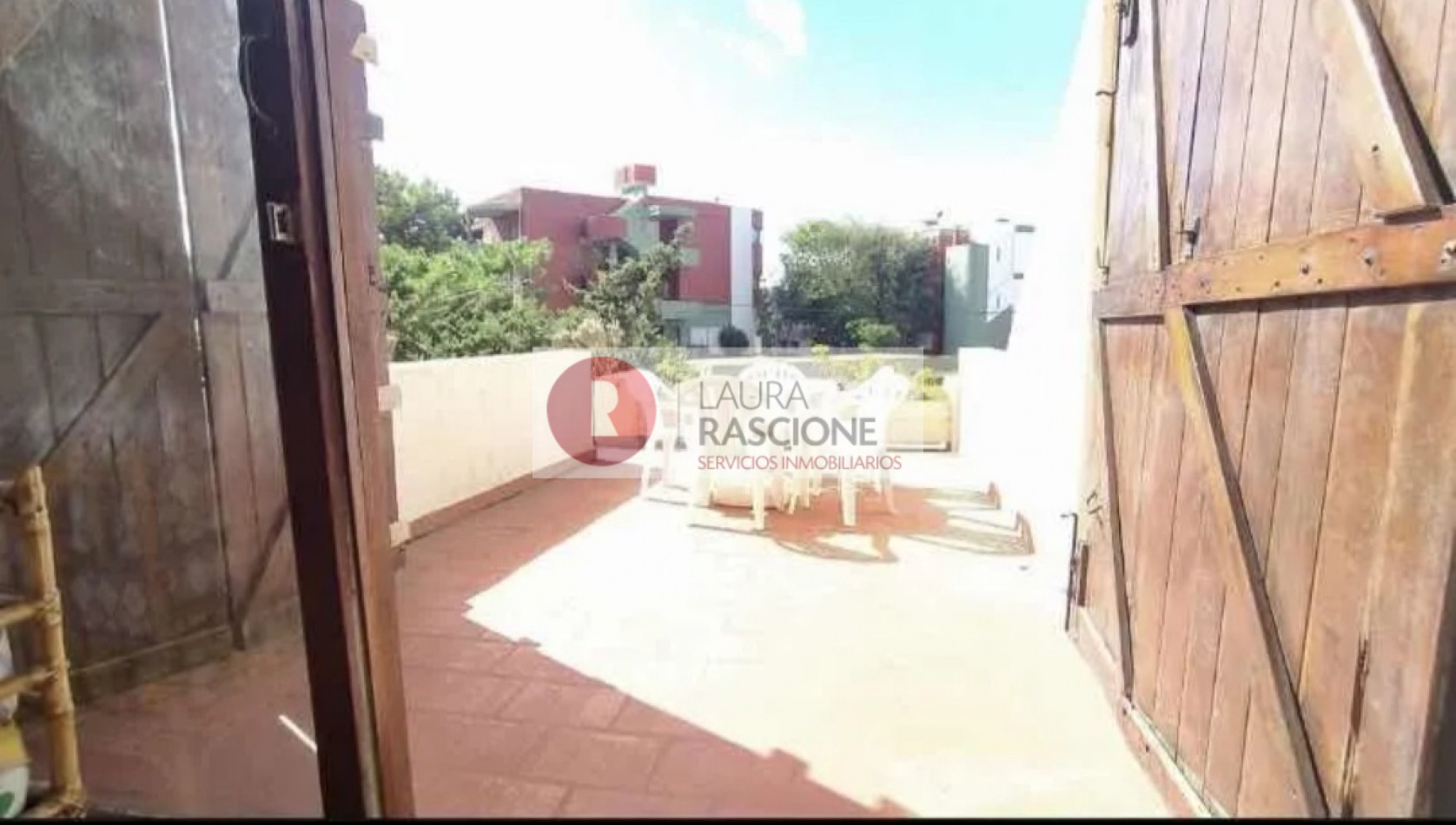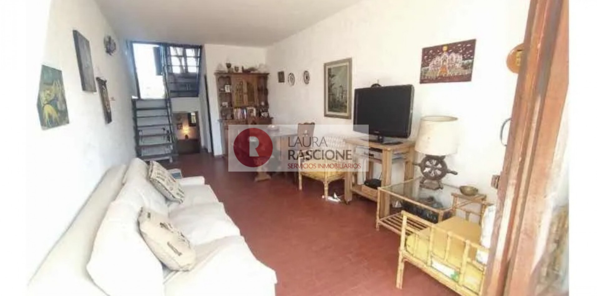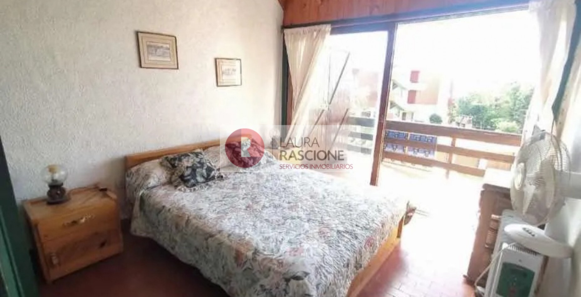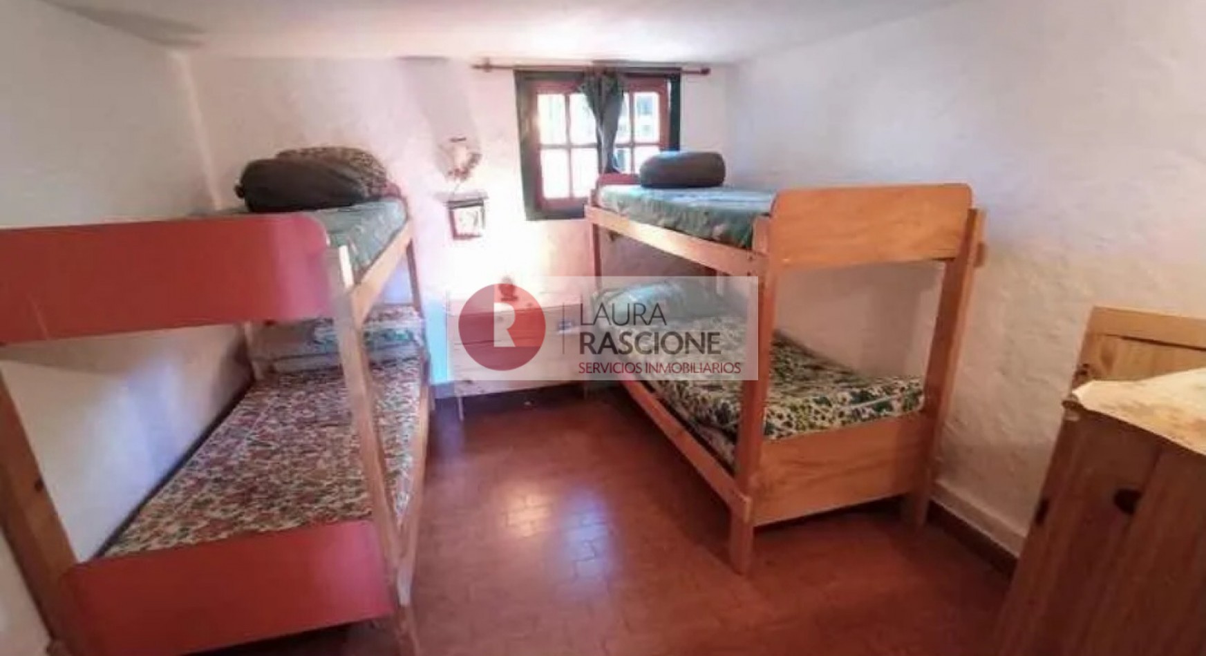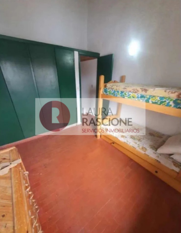 PRIMER PISO: hermoso balcón terraza con mesas y sillas,acceso a living comedor con amplios ventanales y postigones, mesa para 8 personas, vajillero, sillón de 2 plazas, mesa ratona y sillones individuales,1 dormitorio con 4 camas individuales con ventana al contra frente,toilette de recepción, cocina con comedor diario con ventana y puerta wue conduce al patio posterior.