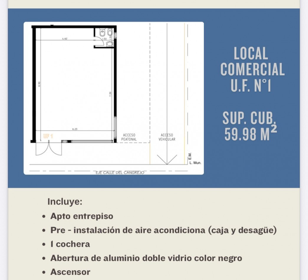 UF N° 1: Local con entrepiso ubicado en planta baja.