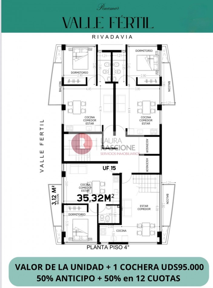 VALOR DE LA UNIDAD + 1 COCHERA USD 95.000 50% ANTICIPO + 50% EN 12 CUOTAS